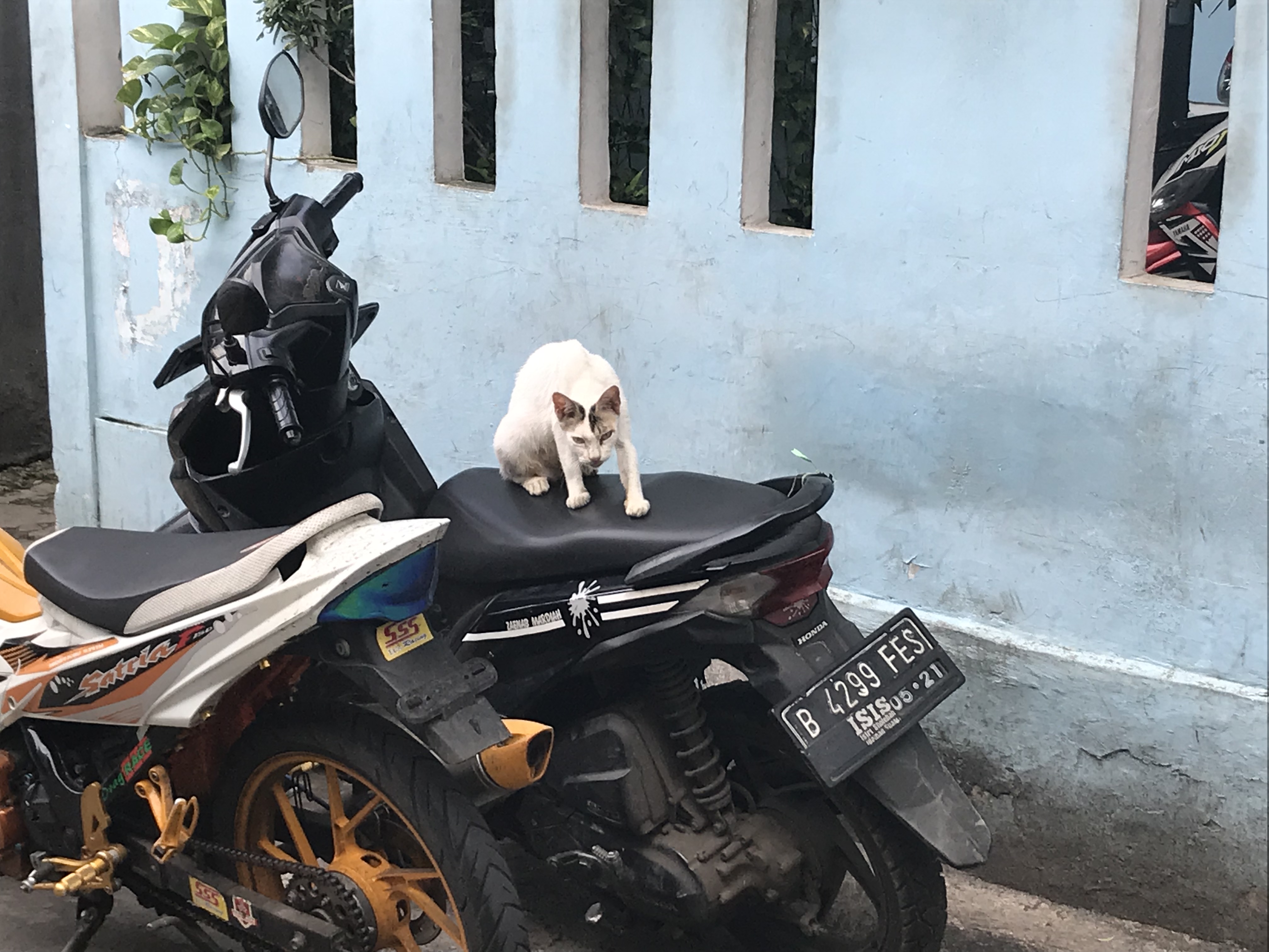 ジャカルタの2大名物と言っても良いかもしれません。バイクと猫の2ショット